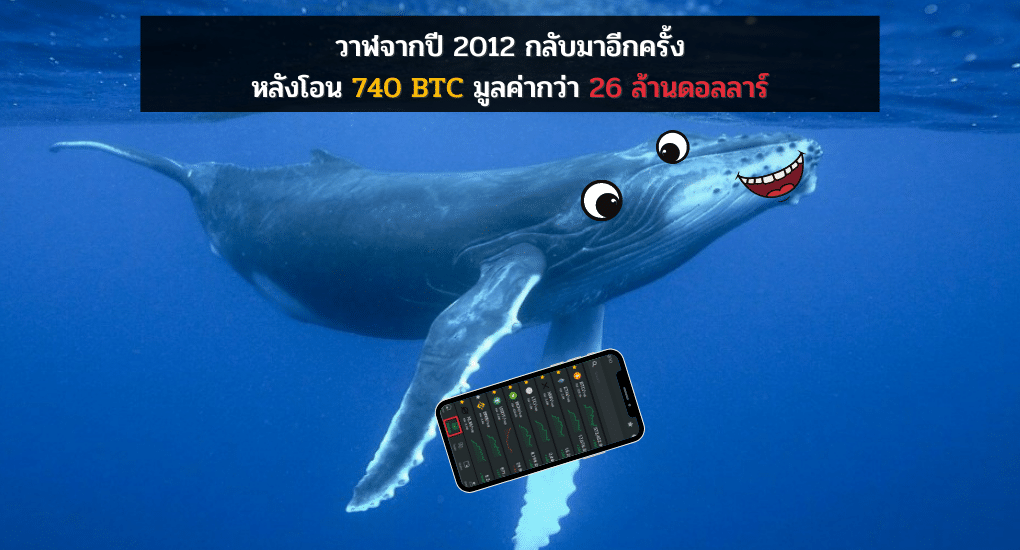 วาฬเจ้าเก่าจากปี 2012 โอน 740 Bitcoin มูลค่าประมาณ 26 ล้านดอลลาร์ ณ เวลาที่โอนนั้น หลังจากไม่ได้ใช้งานมานานถึง 9 ปี ซึ่งวาฬตัวนี้ได้ซื้อ Bitcoin จากวันที่ 31 พฤษภาคม ปี 2555 เมื่อ Crypto นี้มีมูลค่าเพียง 3,700 ดอลลาร์เท่านั้น